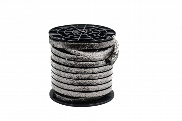 为了制造不同种类的增强柔性石墨线,以用于制造不同种类的柔性石墨盘根,我们采用柔性石墨作为基本材料,分别与天然纤维、合成纤维、金属合金丝和适当的粘合剂混合,然后经过专门设计的工艺流程。